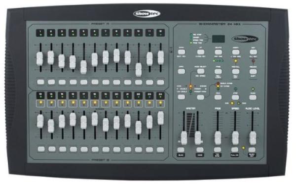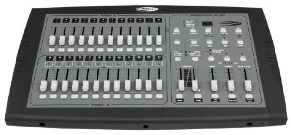 De Showmaster 24 MKII is een 2-banks 12 fader, 1-bank 24 fader mengpaneel. Het bestuurt DMX en he...